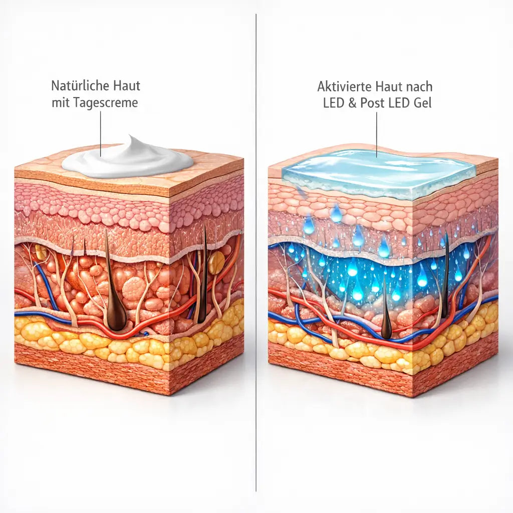 Die ElasticGlow Maske aktiviert zelluläre Prozesse in Ihrer Haut. Diese Prozesse setzen sich in den Stunden nach der Anwendung fort. Das Post LED Beruhigende Gel wurde entwickelt, um genau diese Phase zu unterstützen. Es versorgt die Haut mit den Substanzen, die sie benötigt, während sie auf die Lichtimpulse reagiert. Keine zusätzliche Routine. Keine komplizierte Entscheidung. Eine logische Ergänzung zu dem, was Sie bereits tun.